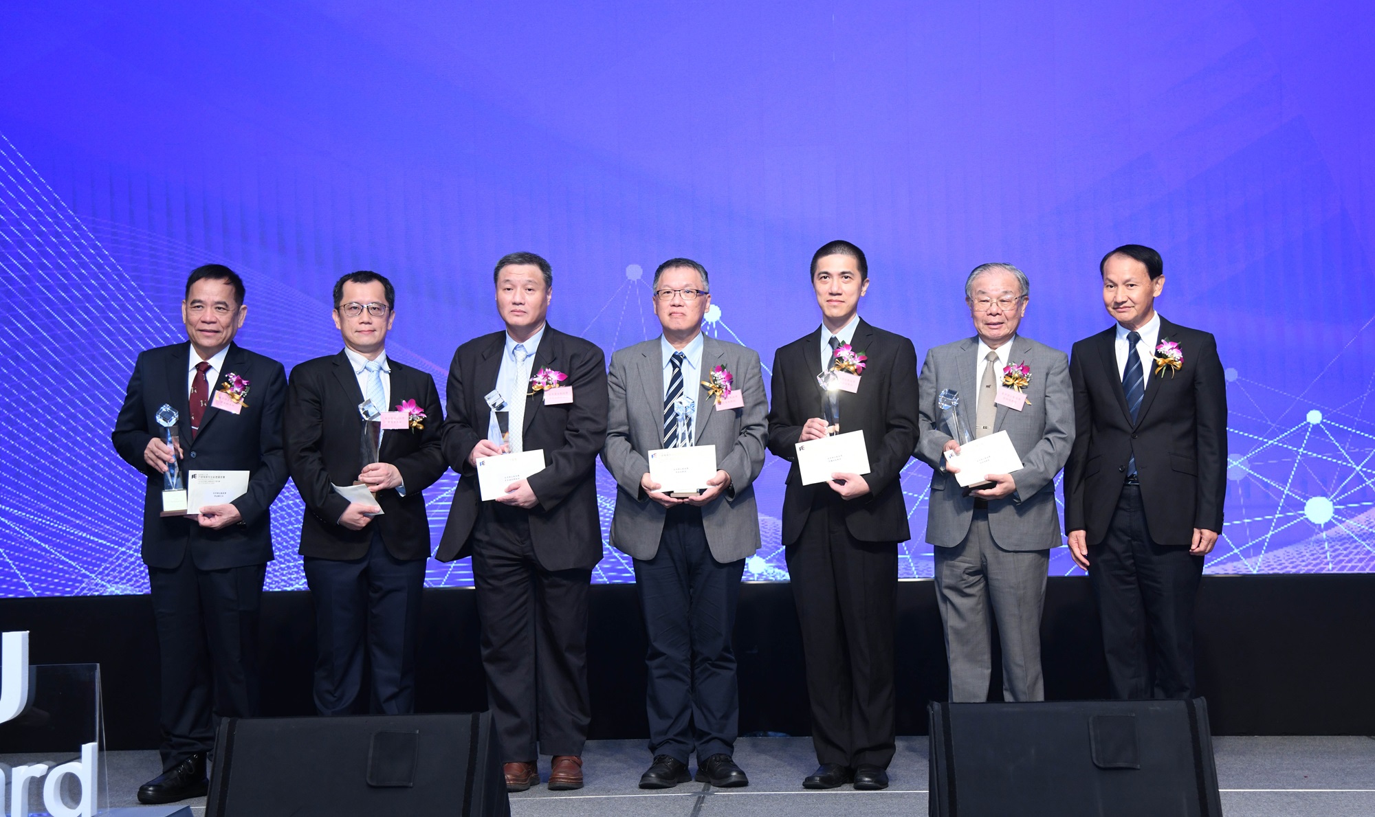 上圖:徐有庠基金會董事徐旭平(中)、董事徐國梅(左三)與有庠科技講座得主合影。