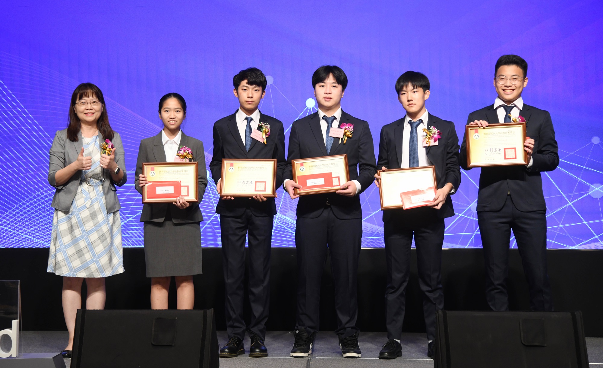 下圖:教育部國教署高級中等教育組副組長林琬琪(左一)與IYPT台灣代表隊合影。