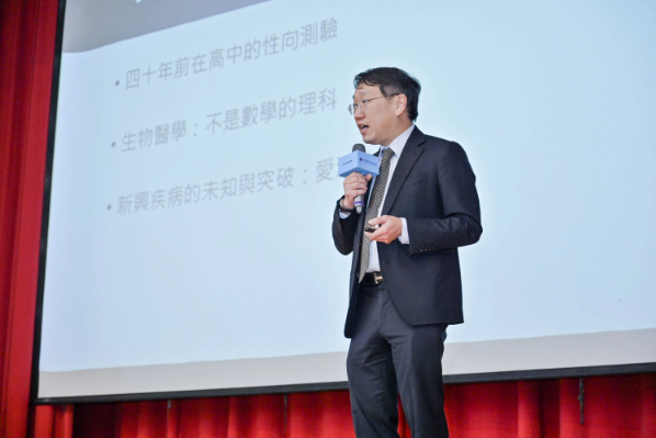 對台下的高中生,楊慕華給了直接的建議:不要只靠高中生物課本判斷自己對醫學有沒有興趣。他建議學生上網看國外大學的生物學先修課程,或看科普短片。那些內容更接近真實的生物醫學研究,「你會覺得不是在背東西,而是非常有趣。」